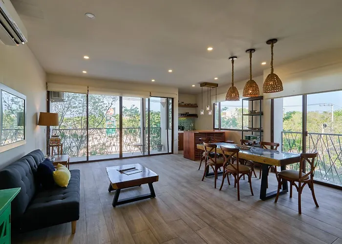 Nestled in the La Veleta district, the 60 m^2 Apartamento Centrico Y Espacioso Tulum Apartment is within a 10-minute drive of such cultural places of interest as Iklab Art Center. This 1-bedroom apartment features Wi-Fi, along with parking for guests travelling by car.